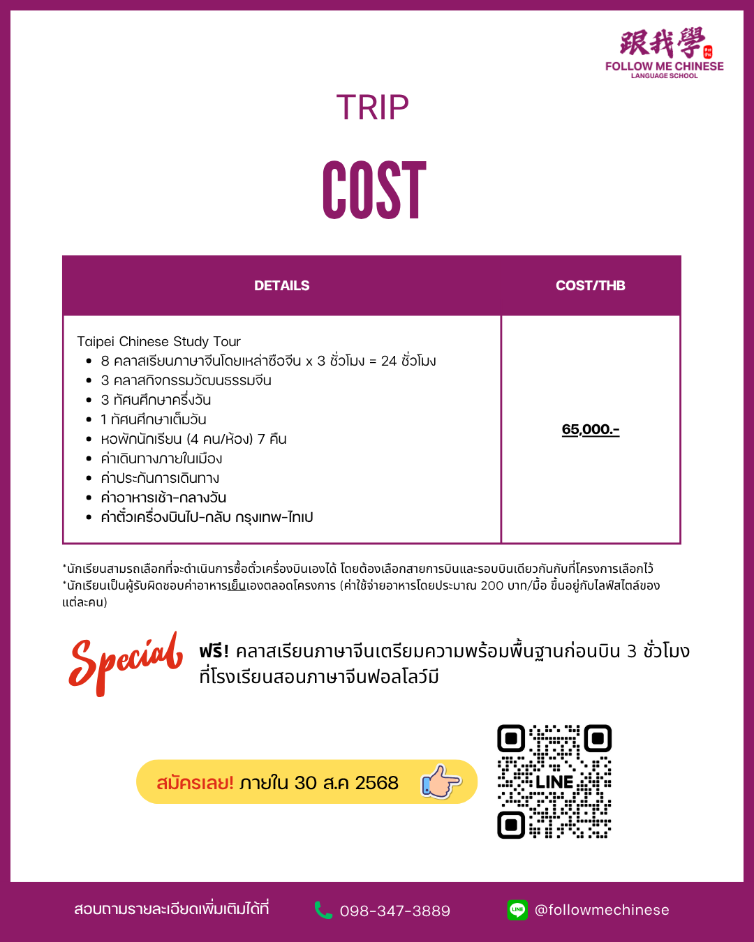 สามารถสอบถามรอบแคมป์ครั้งถัดไปได้ที่ LINE OA: @followmechinese