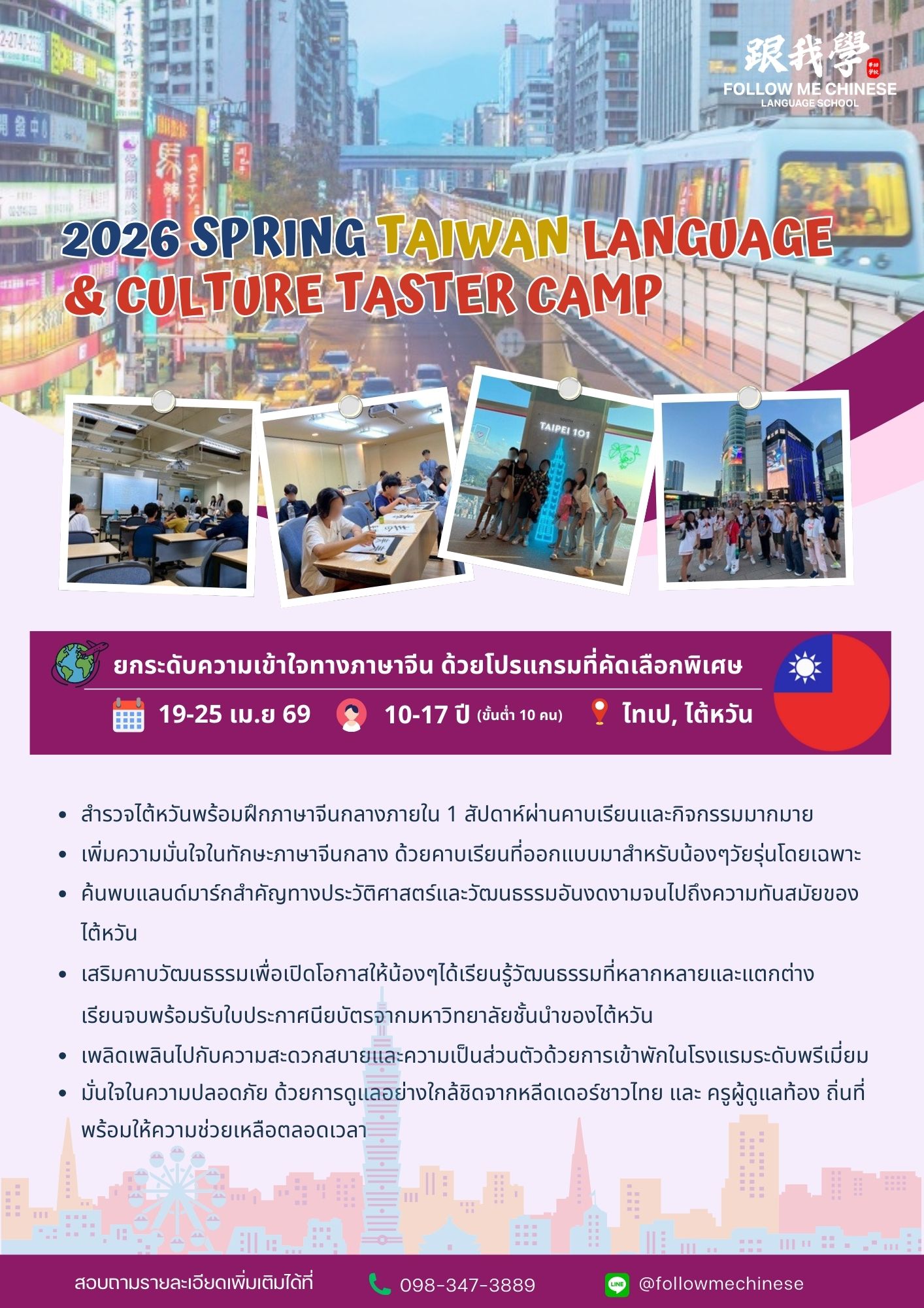 สำหรับ: น้องๆที่มีความสนใจอยากเปิดประสบการณ์การเรียนรู้ภาษาและวัฒนธรรมที่ไต้หวัน อายุ 10-17 ปี