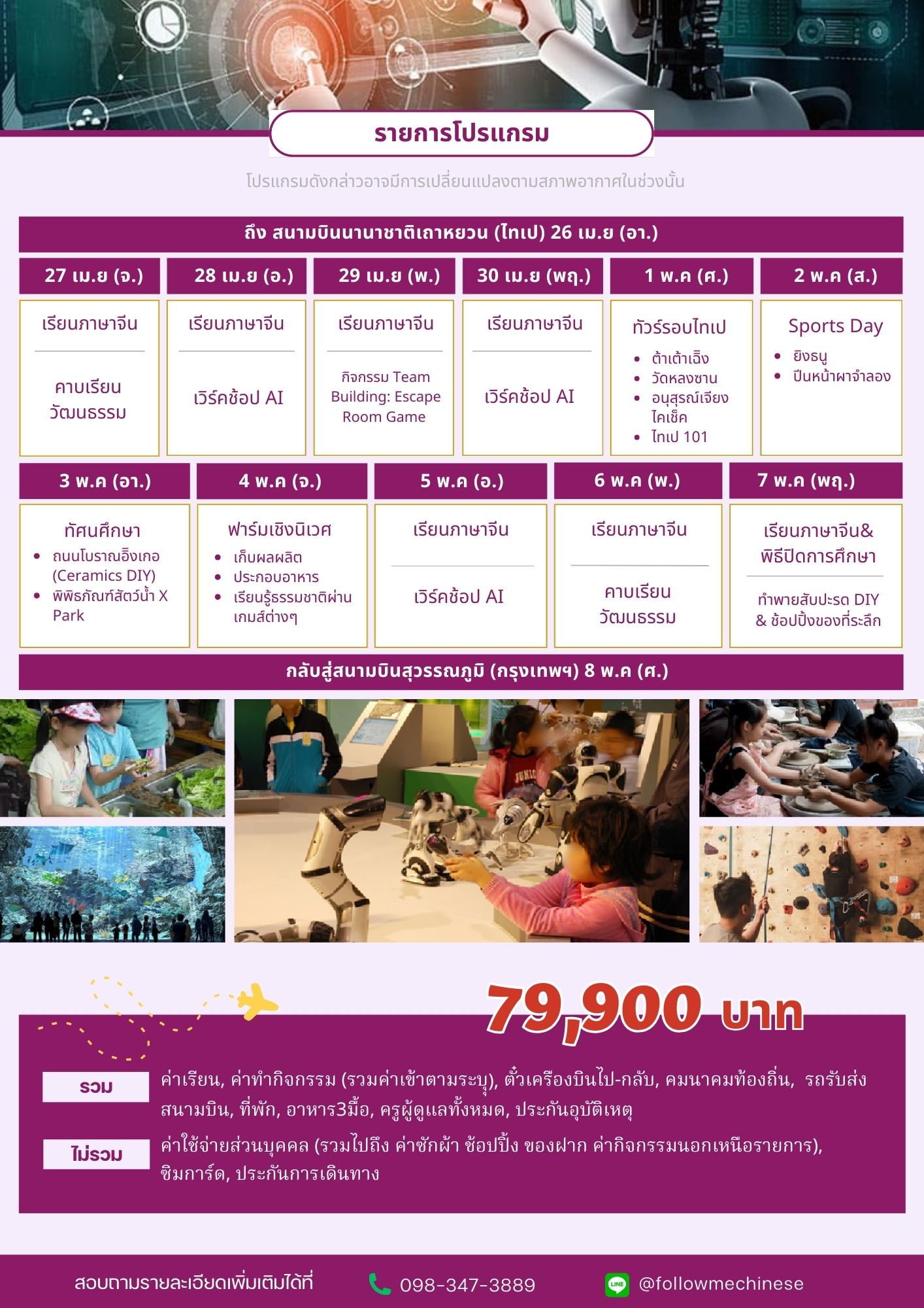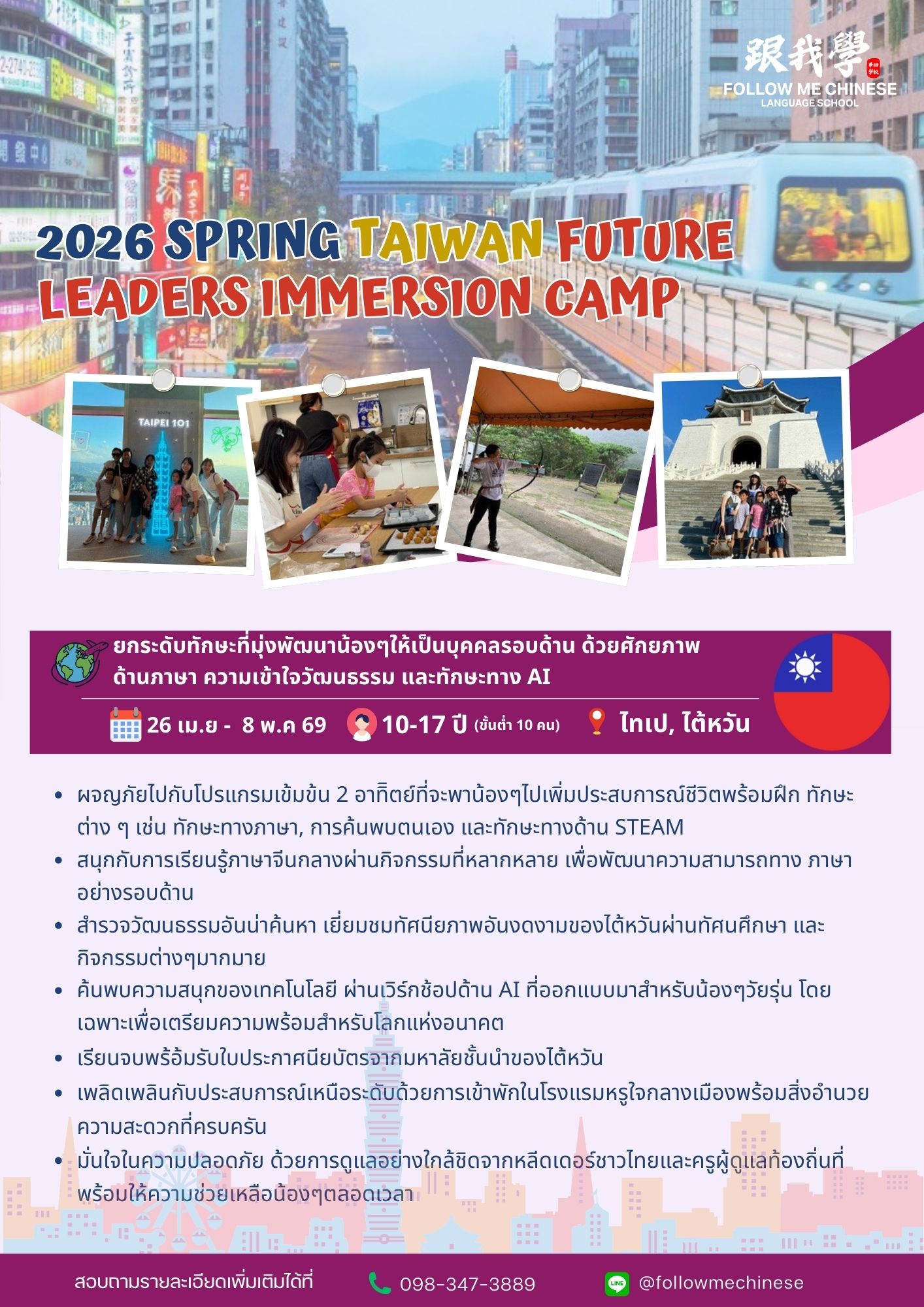 สำหรับ: น้องๆที่มีความสนใจอยากเปิดประสบการณ์การเรียนรู้ภาษาและวัฒนธรรมที่ไต้หวัน อายุ 10-17 ปี